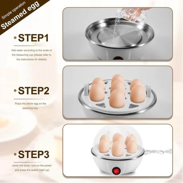 - Simply add water to the stainless steel base. place the egg holder. arrange the eggs. close it. and turn it on.